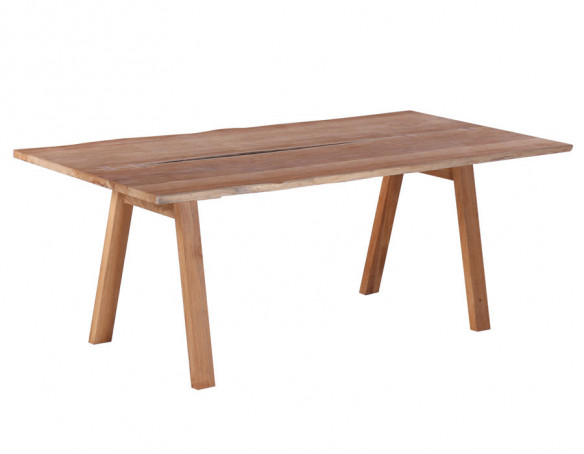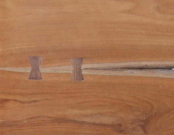 Samlingerne mellem de 2 planker med rå kanter, er i hver ende markeret med to “butterfly”-samlinger. Udført i superflot kerne teaktræ af 1. klasses kvalitet.