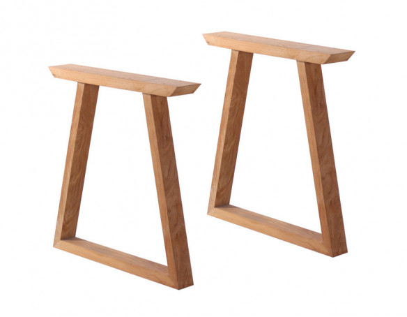 De kraftige bordben med trapez-form er ligeledes fremstillet i massiv kerneteak og fuldender bordets eksklusive look.