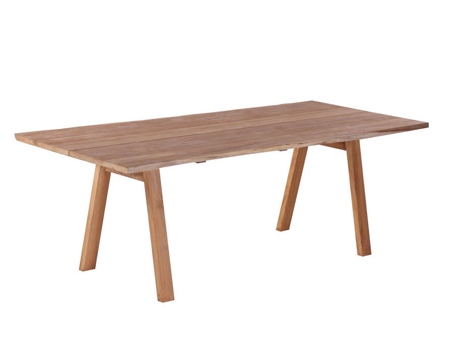 De skrå bordben er ligeledes fremstillet i massiv kerneteak, hvilket sikrer et solidt og stilrent design hele vejen igennem.