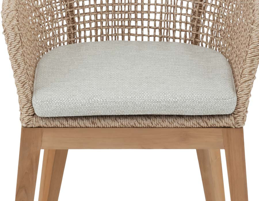 Rima havestolen kombinerer varme naturmaterialer med et let og elegant udtryk. Det solide stel i certificeret kerneteak giver stolen en stabil base og fremhæver træets smukke, naturlige farvespil.