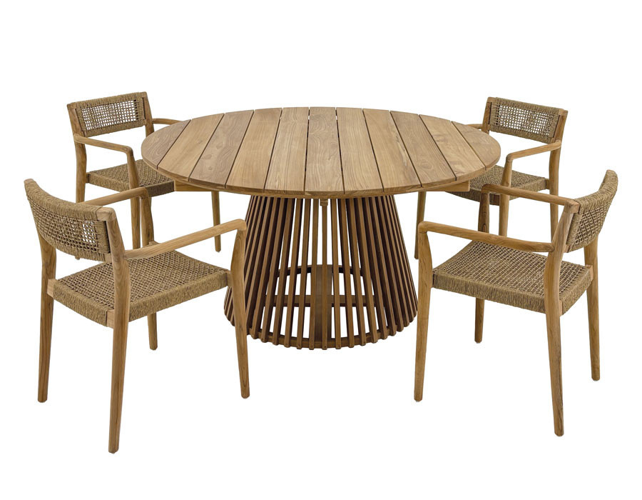 Fantastisk smukt havemøbelsæt med Luna-bord og 4 Manja stole. Alt fremstillet i kerne teaktræ fra plantage i Indonesien.