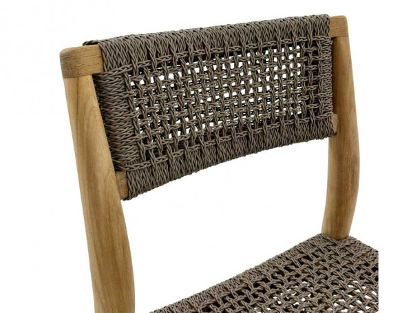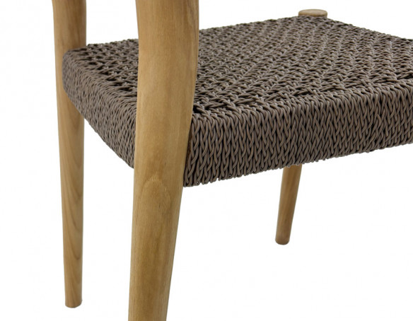 Hertil fire Alana havestole også udført i kerne teaktræ og med et flot håndflettet sæde i polyrattan der er UV-bestandigt og nemt at rengøre. Stolen giver en komfortabel siddeoplevelse og har et stilrent look.