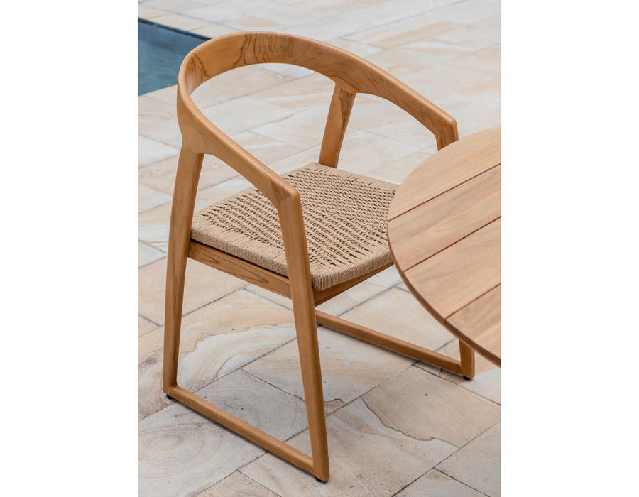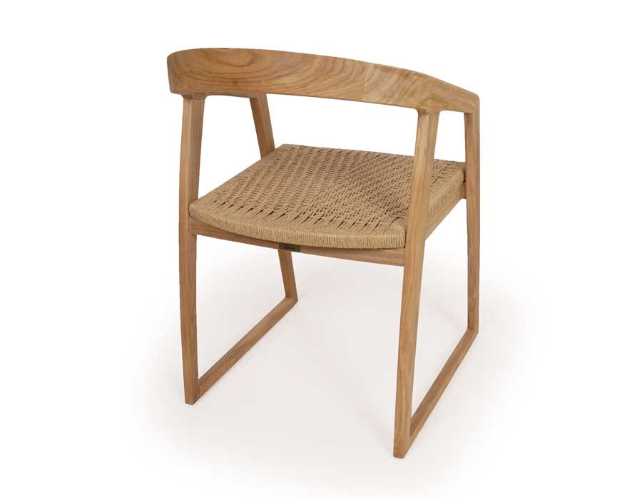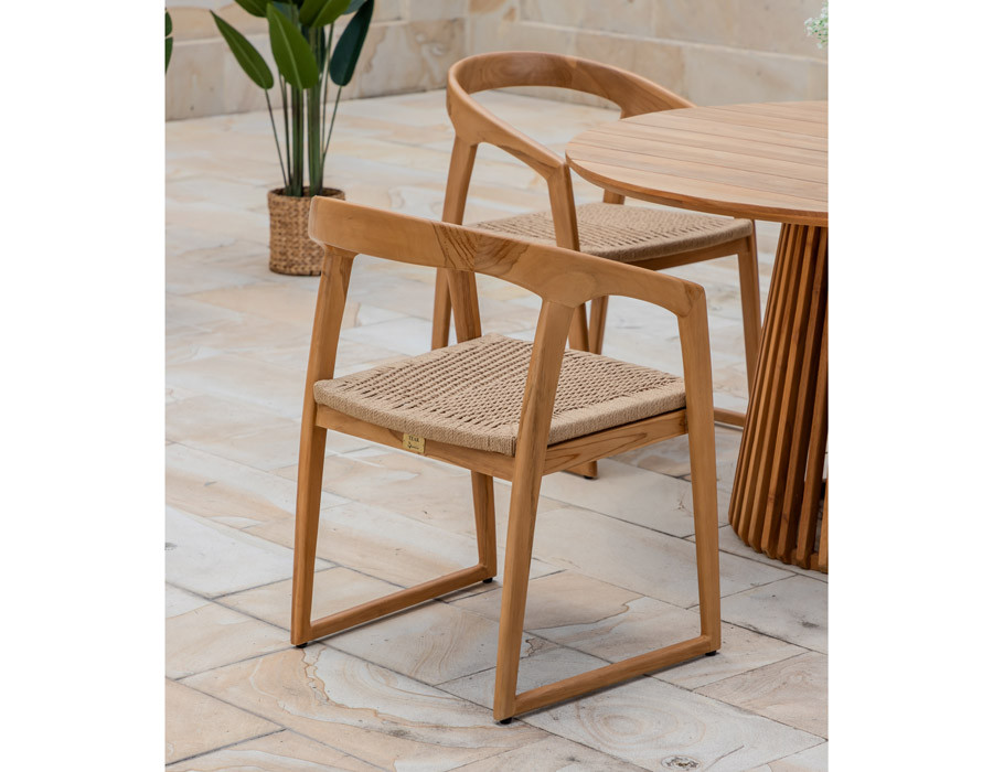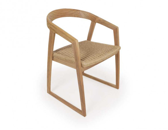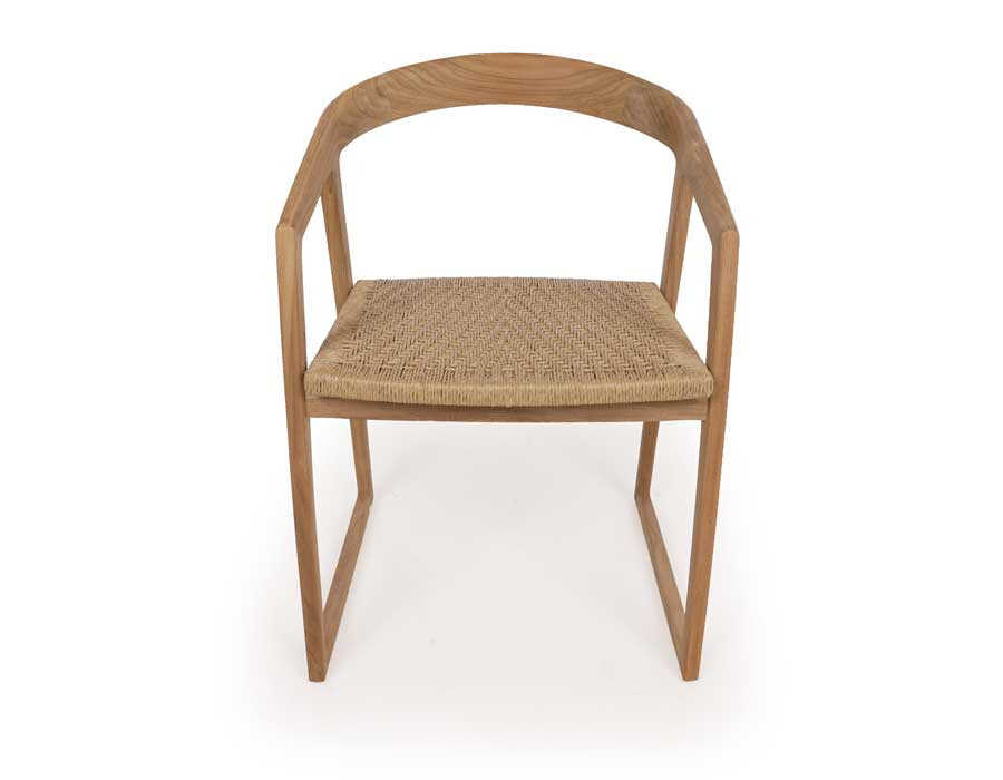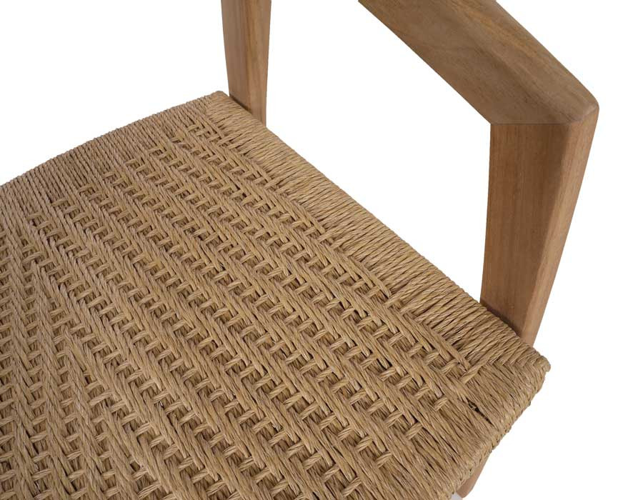 Fremstillet i lækker kerneteak. Stolen er med håndflettet sæde i polyrattan der er UV-bestandigt, nemt at rengøre, miljøvenligt og 100% genanvendeligt.