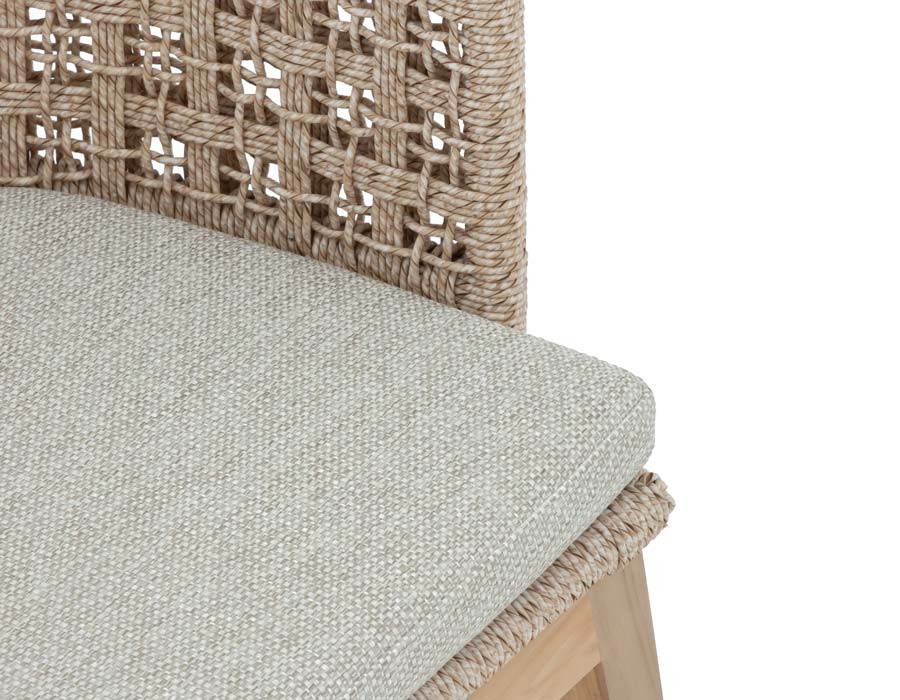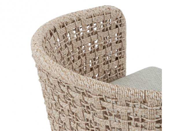 Ryglæn og sider er udført i flettet polyrattan, som tilfører et moderne, luftigt look og samtidig giver behagelig støtte, når du sidder ved bordet. De bløde,...