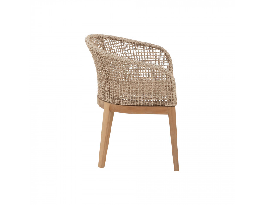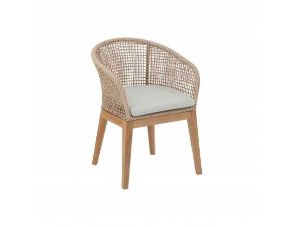 Lago stolen kombinerer varme naturmaterialer med et let og elegant udtryk. Stellet er fremstillet i certificeret kerneteak, som giver en solid base og et smukt, naturligt farvespil, der passer perfekt til uderummet. Sæde og ryglæn er udført i flettet polyrattan i et åbent netmønster, som giver stolen et luftigt, moderne look og en behagelig, omsluttende...