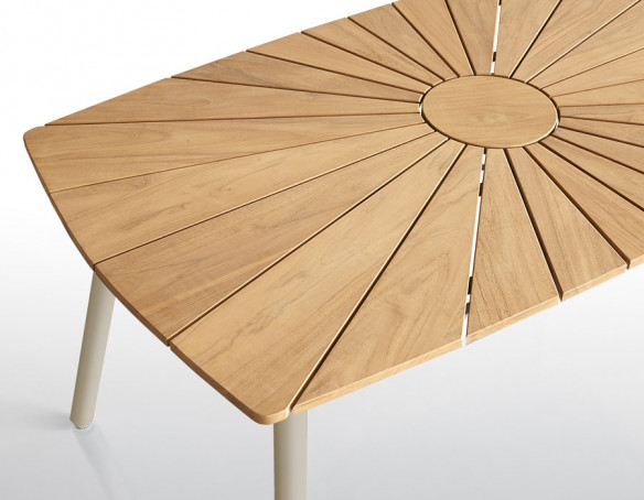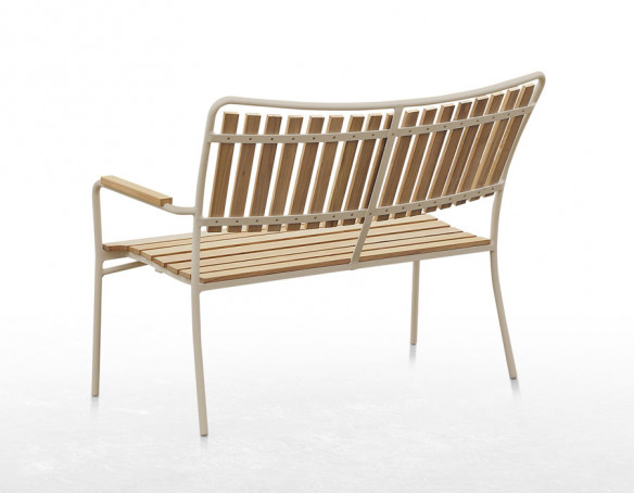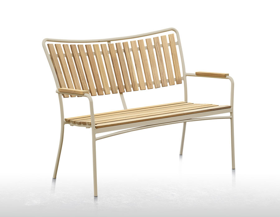 Eva-stolene og Eva-bænken følger samme designlinje med aluminiumsstel i Latte og sæde/ryg i certificeret kvalitetsteak, som giver høj komfort og et naturligt, elegant look. Stolene er ergonomisk formet og kan stables for nem opbevaring, mens bænken giver ekstra siddeplads uden at fylde visuelt. Teaktræet er certificeret og stammer fra ansvarligt skovbrug.