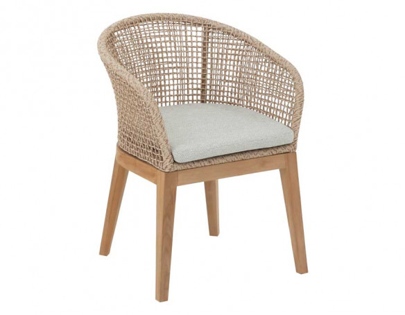 Lago stolen kombinerer varme naturmaterialer med et let og elegant udtryk. Stellet er fremstillet i certificeret kerneteak, som giver en solid base og et smukt, naturligt farvespil, der passer perfekt til uderummet. Sæde og ryglæn er udført i flettet polyrattan i et åbent netmønster, som giver stolen et luftigt, moderne look og en behagelig, omsluttende...