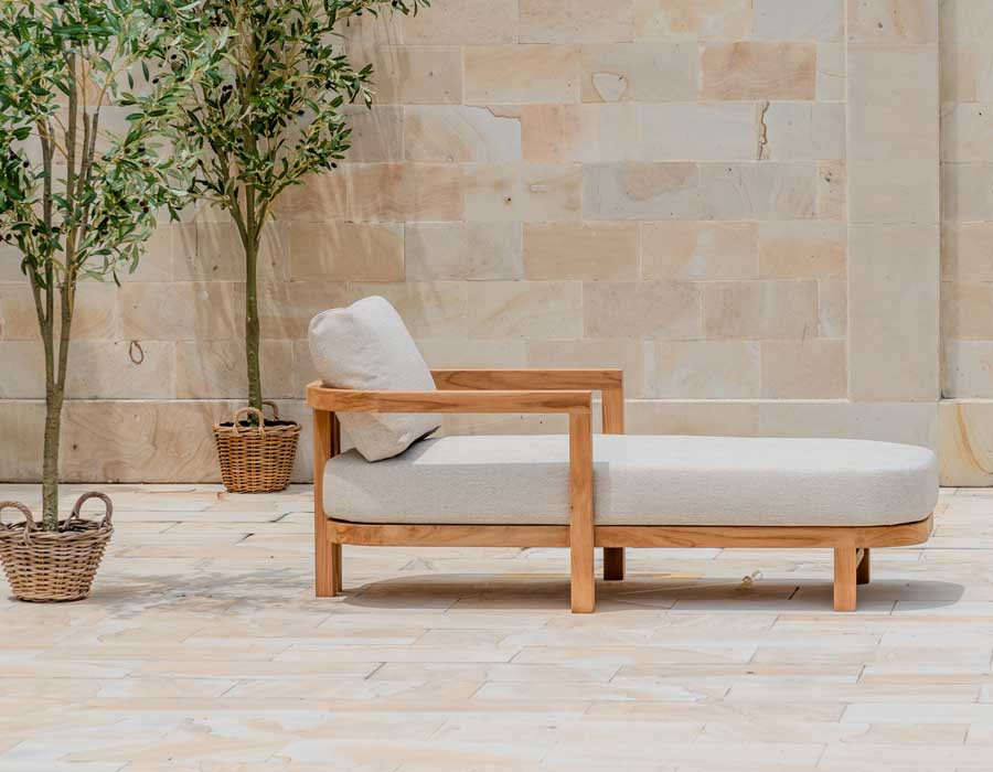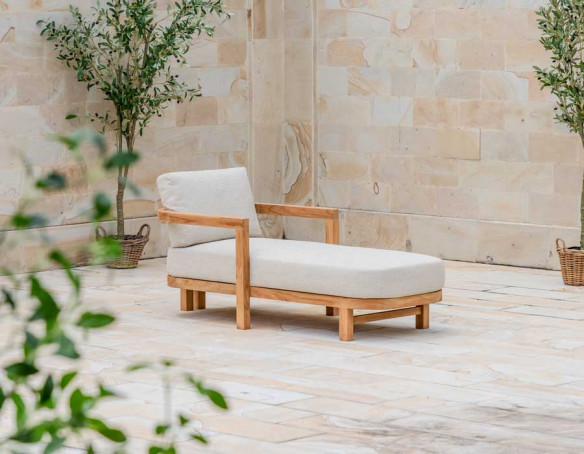 Luksuriøs Las Vegas sofa i førsteklasses teak. Denne sofa kombinerer komfort og holdbarhed, og passer perfekt til enhver udendørs indretning.