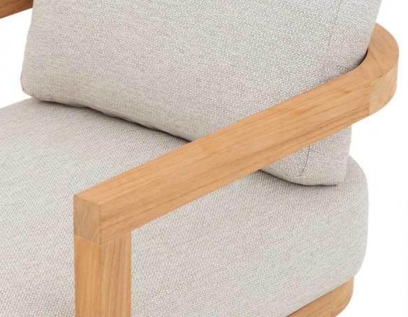 Sættet har stel i kerneteak i allerbedste kvalitet og hynderne er betrukket med Sunproof® stof, der er 100% Olefine, OEKO-TEX certificeret og 100% genbrugsmateriale. Den kan modstå både sol og regn. Hynderne indeholder Quick Dry Foam fra Inoac, som tørrer hurtigt, så sættet altid er klar til brug....